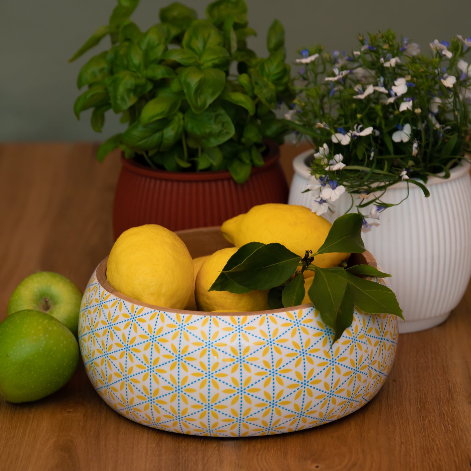 Dekorative Salatschüssel mit Besteck aus Mangoholz in Mint Garden