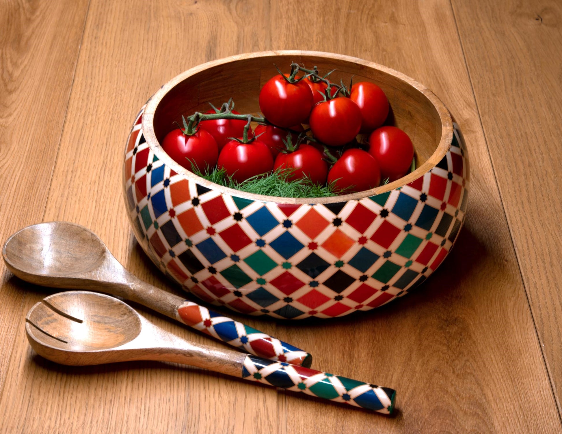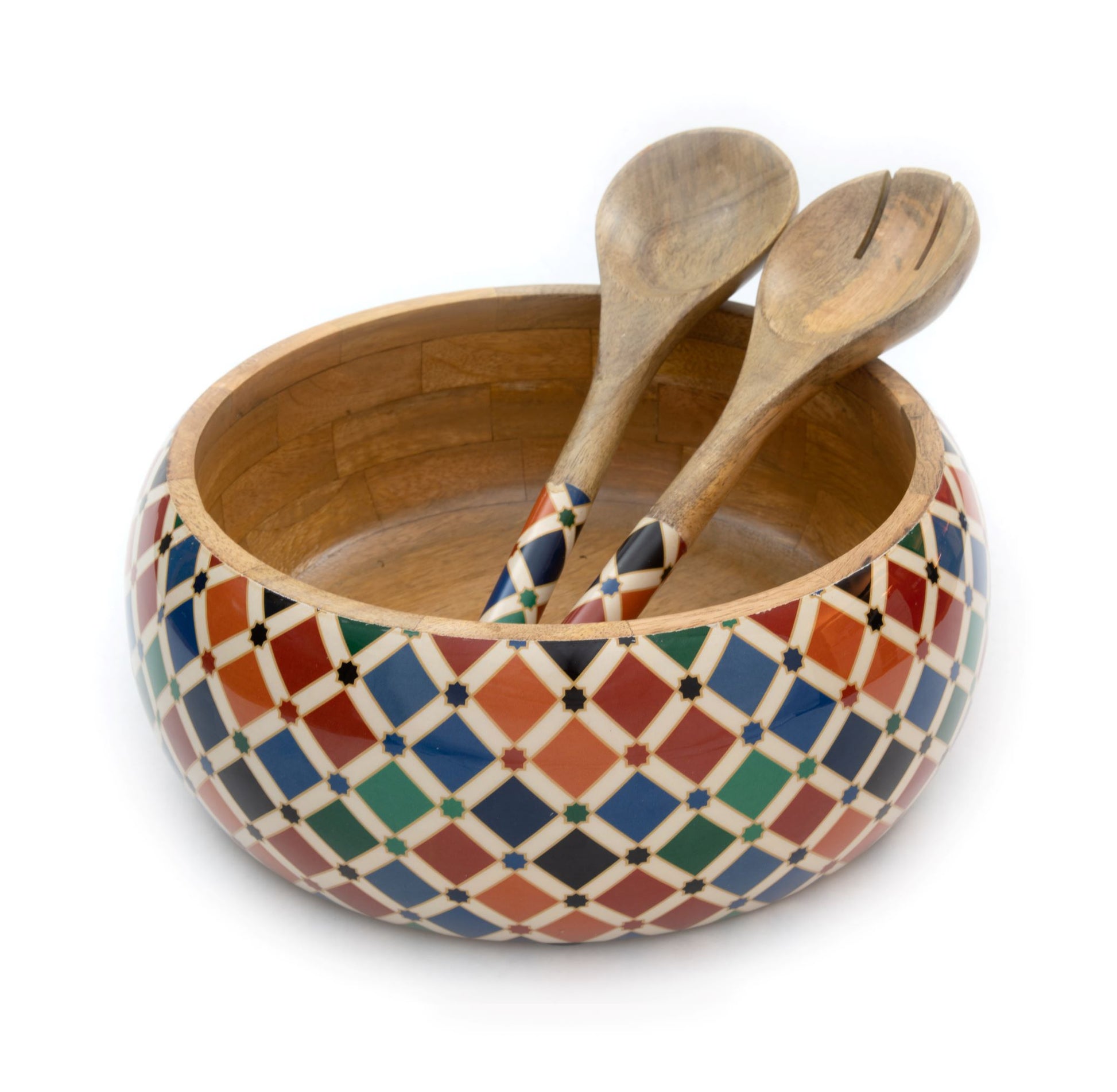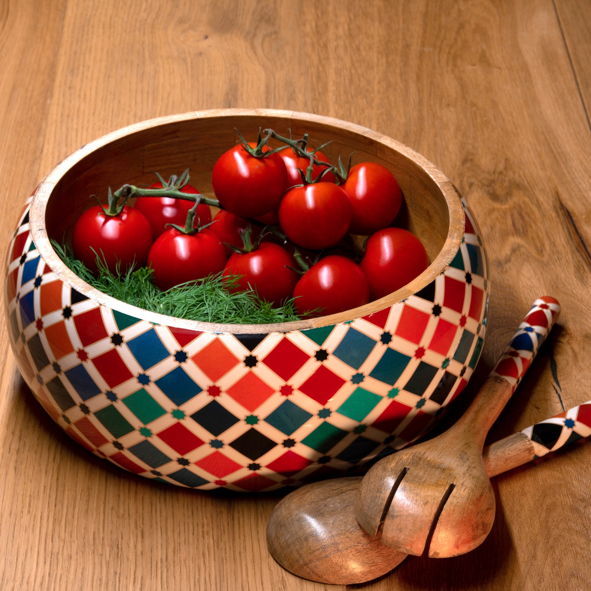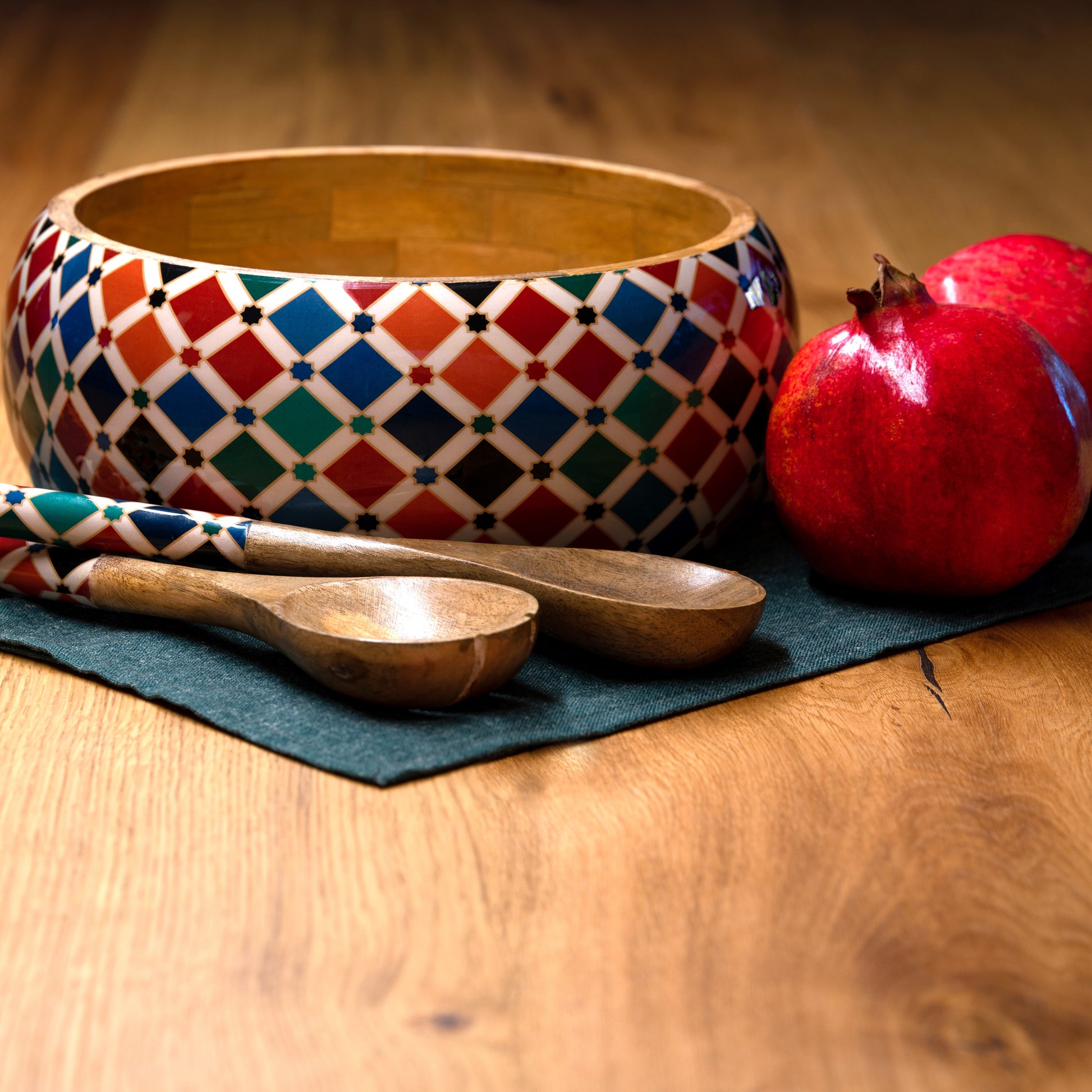Dekorative Salatschüssel mit Besteck aus Mangoholz in Multi Square
